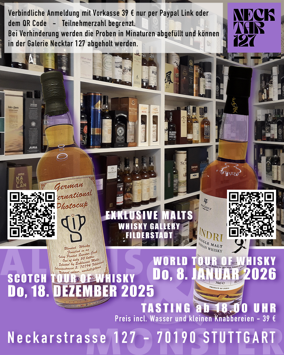 Das Angebot umfasst Raritäten und Spezialitäten sowie Einzelfassabfüllungen hauptsächlich schottischer Malt Whiskys. Exklusive Malts präsentiert unabhängige Abfüller vom Scotch Single Malt Circle (SSMC), C&S Dram Collection, The Whisky Agency, Whisky Fair, Perfect Dram, A.D. Rattray, Duncan Taylor, Cadenhead, First Edition, Whisky Druid, Coopers Choice, The Whisky Chamber, The Whisky Cask, Warehouse No. 8, Riegger, Hartbrothers, Jack Wiebers, David Stirk CWC, Adelphi, SMWS und viele mehr... Interessierte Whiskyfreunde können unter whisky(at)exklusive-malts.de die aktuellen Angebote anfordern. Der Verkauf erfolgt nur an Personen über 18 Jahre!