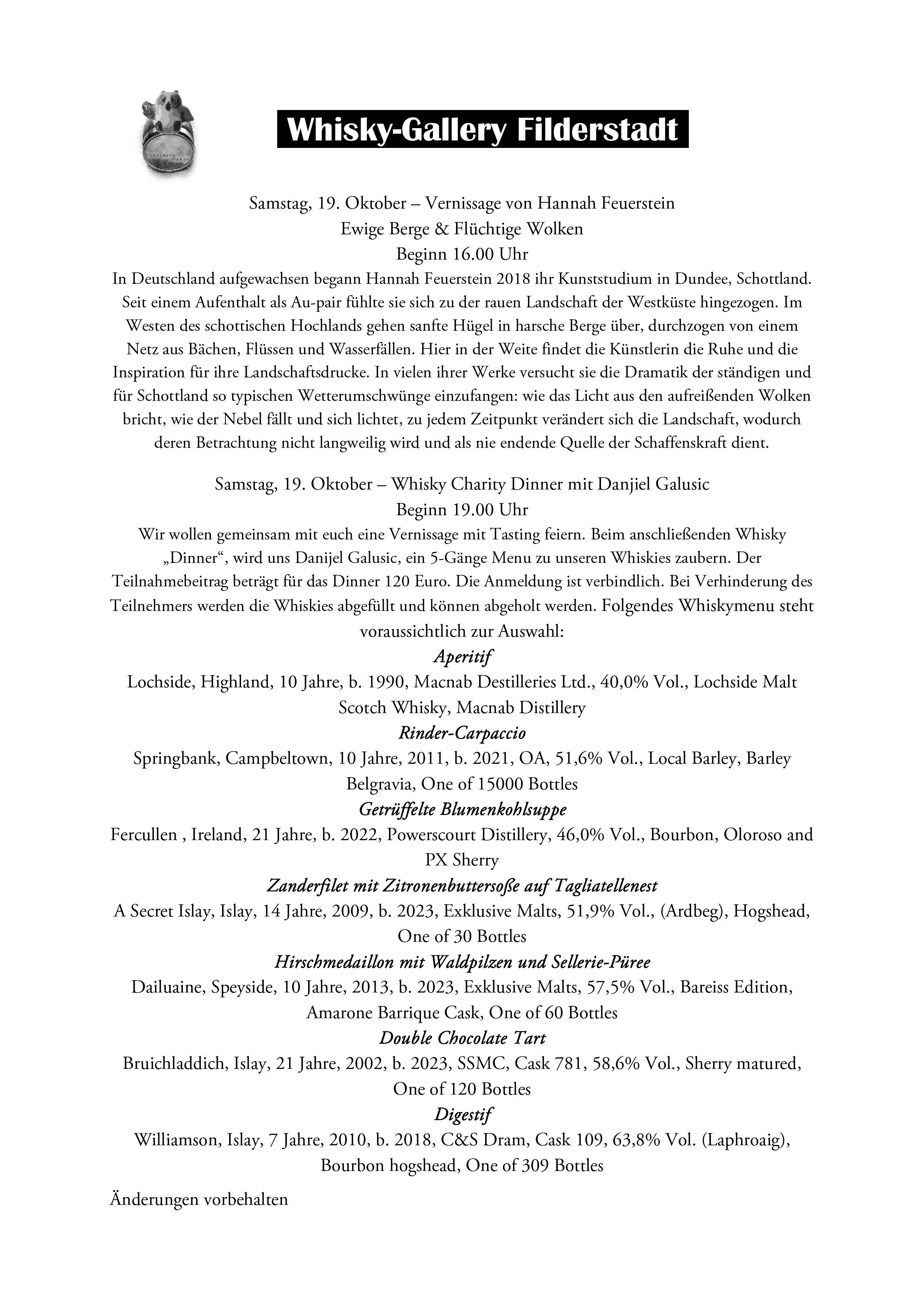 Vernissage & Whisky Dinner